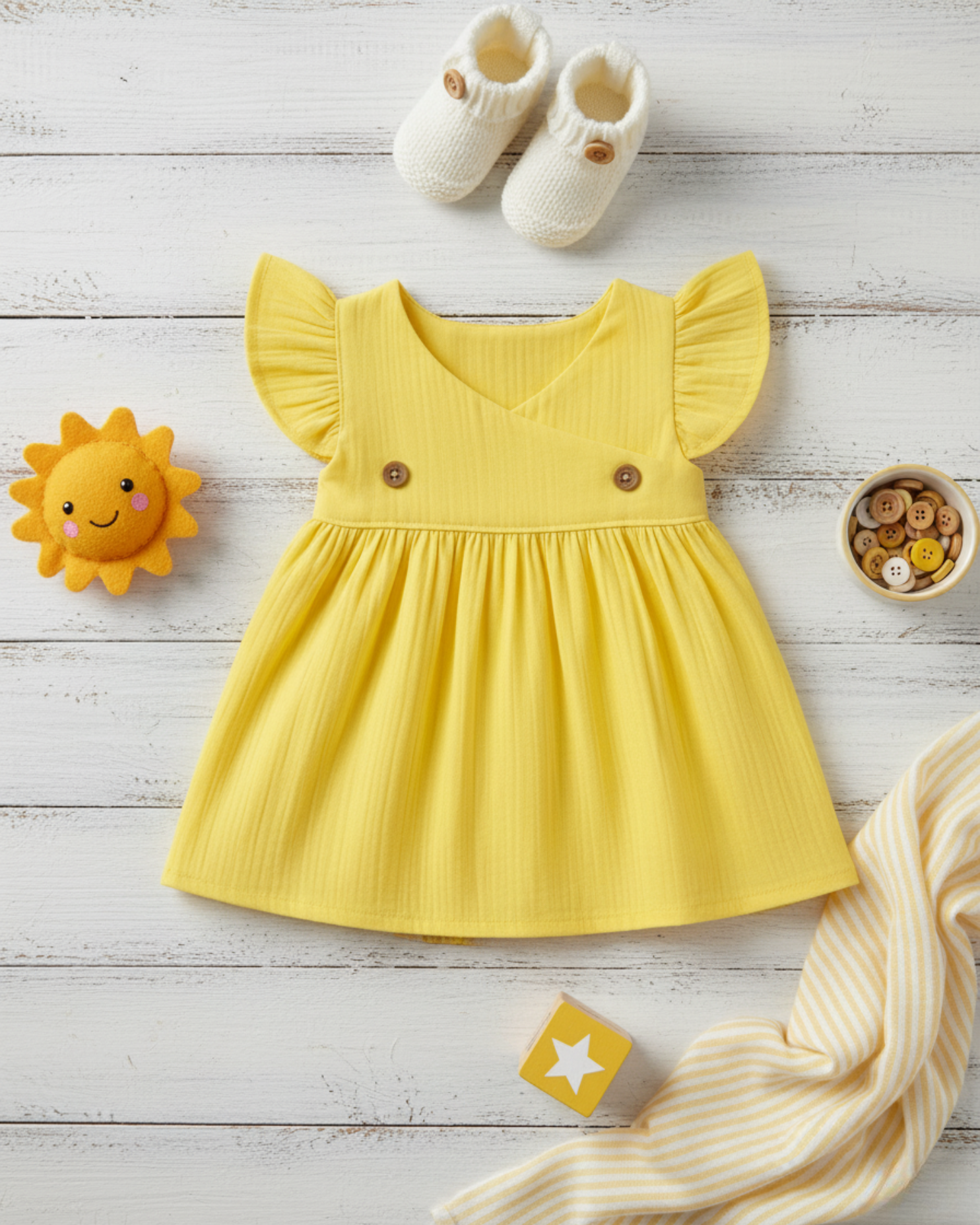 This flutter sleeve frock for baby girls is crafted from 100% muslin cotton with a double-layered design, ensuring a soft, breathable, and comfortable fit. Lightweight yet stylish, it’s perfect for outings, playdates, or casual occasions, adding a chic and elegant touch to your little one’s wardrobe.