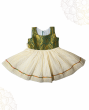 Kasavu Frock with Multicoloured Lace & Green Brocade Chest