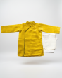 This Vichithra silk kurta features intricate green embroidery on the front, blending Munsell yellow and sage green tones. Paired with a soft off-white cotton bottom with cotton lining, this set is a stylish and comfortable choice for festive and traditional occasions.