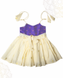 Kasavu Frock with Lavender Butta Chest & Tie Knot