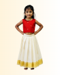 Maroon Golden Buta Crop Top with Temple Border Kasavu Skirt – Festive Elegance