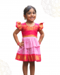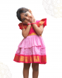 Pink & Pastel Pink Kalyani Cotton Frock with Golden Lace Detailing