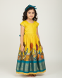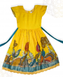 Make your little one shine in this elegant yellow silk-cotton long ethnic frock, designed with a perfect blend of tradition and style. Featuring scallop lace detailing at the hem and a vibrant traditional bird & tree print, this outfit is ideal for festive celebrations, weddings, and cultural occasions.