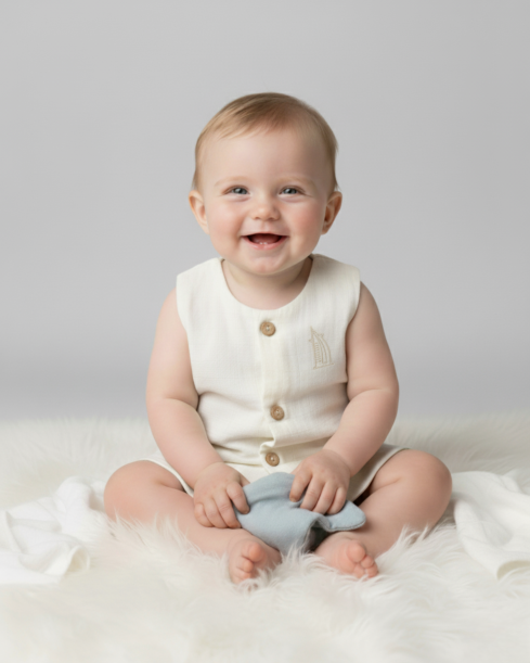 This unisex jabla is made from 100% soft muslin cotton and features a double-layered design for added comfort. The elegant embroidery on the left chest gives it a stylish touch, while the lightweight and breathable fabric makes it a perfect choice for summer. Designed with a sleeveless cut, it keeps your little one cool and comfortable on warm days.